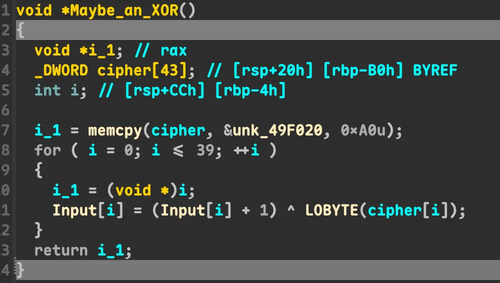 # 逆运算: Input[i] = (data[i] ^ cipher[i]) - 1